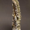 Sculpture en grés faisant partie d’une série de 4, émaillée de glaçures élaborées avec des argiles récoltées au Maroc, et surmontée d’une pierre. Elle est fixée sur un socle en grés lui-même émaillé (non visible sur la photo). 2 cuissons à 1300°C en four gaz, atmosphère réductrice.